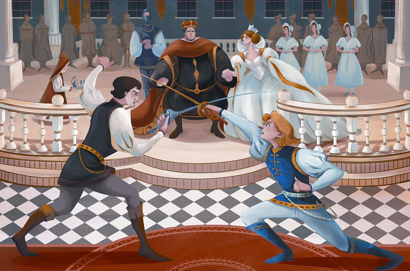 《哈姆莱特》的开场便弥漫着死亡的气息,一层又一层的矛盾不断积累,一波未平一波又起。前任国王与现任国王之间的权力争夺、婚姻伦理是整部剧的最初矛盾,紧随其后的是哈姆莱特向国王复仇过程中的矛盾,当复仇的利剑悬于仇敌头上时,他却犹豫了:“我决定现在就干,让他上天堂去,这也算报了仇。不,那还要考虑一下……收起来,我的剑,等候一个更残酷的机会吧。”[14]还有他在爱情上的矛盾,他对人的本性产生怀疑,他坚信美德不能熏陶自己恶的本性,以至于他亲手毁灭了自己的爱情。在复仇的过程中,他的延宕一直扩大着这种矛盾,死后该有何种归宿和命运,成为他行动上的阻碍。直到那场谋划的斗剑如期进行,王后惨死、阴谋揭露,哈姆莱特内心的矛盾最终达到极限。最终,哈姆莱特以自己与其他人的死亡来化解复仇,这一行动构成文本中最惨烈、最宏大的一次死亡。莎士比亚在文本中为哈姆莱特等人创造的“死亡”式解脱带有西方特有的宗教意味,他企图通过个体死亡后的另一种“生存”来实现道德救赎。在最后的大屠杀中,乔特鲁德在死亡中挣脱出痛苦的樊篱,克劳狄斯与莽撞的雷欧提斯在死亡中将仇恨埋葬。在这个腐朽的王室内,死亡成了最后的也是唯一的矛盾调和手段。[15]