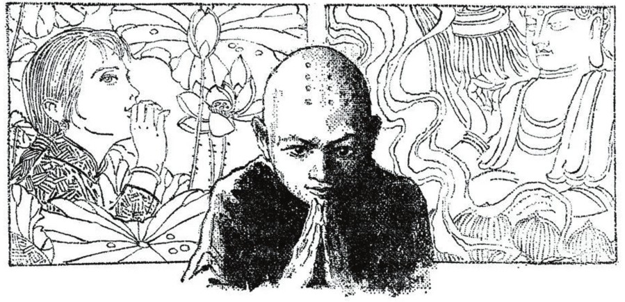 明海也很聪明,不然他也不会有机会成为善因寺的“储备方丈”(沙弥尾),到这里,其实明海也是个有故事的和尚了。就像仁渡很会唱小曲,有很多相好一样,明海和尚很会画花样,十里八乡的姑娘都请他帮忙画花。