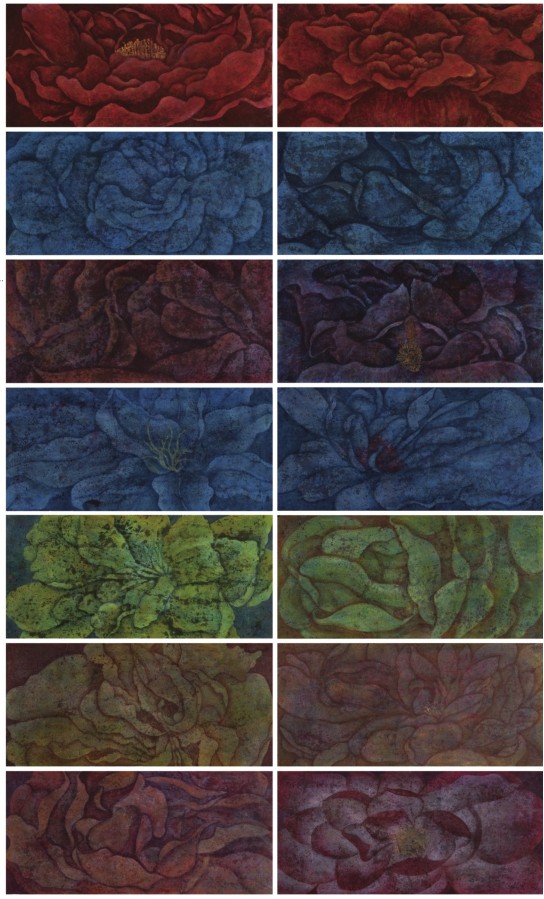 李圩的《云梦系列》也极为精彩,可以大致被分为青绿冷色调和红紫暖色调两大类。《云梦系列——碧云深》《云梦系列——清平乐》《云梦系列——醉乡村》是青绿冷色调作品中的经典之作。而《云梦系列——花溪碧》《云梦系列——柳垂金》《云梦系列——瑞云浓》《云梦系列——倚秋千》则为红黄暖色调作品中的得意之作。