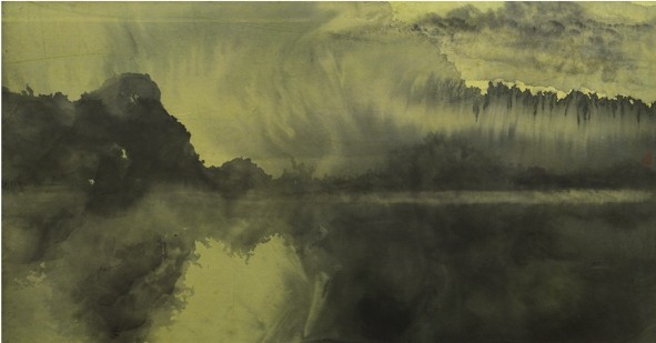 李圩的《无相系列》作品亦为上乘之作,其蕴含着深邃的庄禅哲学与美学精神。这类作品大致可以被分为水墨画与彩墨画两种。