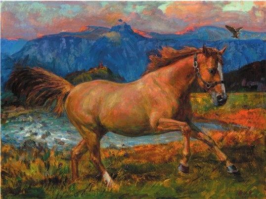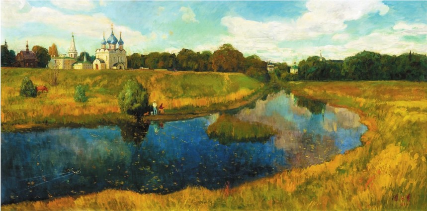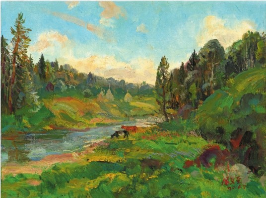潘义奎先生的风景油画以《奔腾的骏马》《戈里巴斯达瓦河》《公园》《郊外的雪》《绿城》《诺夫哥罗德的教堂》《秋日》《去往夏宫的路上》《深秋》《圣彼得堡风光》《苏斯达里的河边》《塔什库尔干的风光》《夏日》为代表。