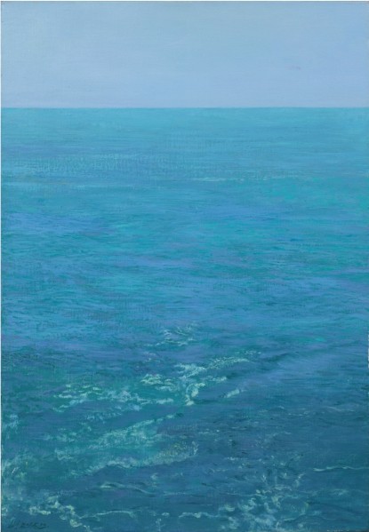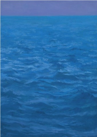 洪樑一系列油画作品的名字比较直白,直抒胸臆,体现出作者的艺术理念和审美取向。洪樑的作品题材基本上是以静物和大海为主,这些作品的名字相对而言要稍长,并带有诗一般的气息和韵味。哪怕是静物绘画的名字,也是如诗如歌一般,显得轻盈曼妙,如“嘉木欣欣”“疏影流光”“柔光氤氲”等,尤其是大海题材的作品,仅仅名字便让人感受到时光的流逝和精神的超然,仿佛一只手在轻抚着岁月和你我,这也许就是作者的画面所要阐释的精神意蕴,如《独自去找回一个少年的梦》《晨雾蒙蒙,轻浪温柔地涌入心扉》。这些题目都是以一种向内心叩问的方式,回望岁月悠长。《倾听呵,海神普罗透斯轻轻地诉说》《所有的日子,只关乎我和你》《我的心,感受到随风而去的轻盈》,是以一种诉说的方式,表达心灵的律动。这种静水深流的内心对话式的表达方式,是由画家沉静内敛的精神特质决定的,这种安静生发出的力量,往往比外在的张扬更能打动人心。