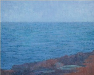 洪樑在创作油画时常常没有中心人物或是虚化掉主体人物,甚至只留下身影或是符号,而去努力表现难以名状的主观感觉。如在油画《倾听呵,海神普罗透斯轻轻地说》中,人物是隐藏不可见的,海边只剩下椅子和衣服等物品。他的油画中,有些是对图像和形象直接表达,有的表现内容则是含蓄地被隐藏起来。如果说在作品《晨雾蒙蒙,轻浪温柔地涌入心扉》中,远处大海的朦胧是一种“隐”, 那么近处海边的岩石就是一种“显”。这种“有”和“无”的统一,契合“道”的显现方式。因此,评论家李长之认为“逸”是中国画对于主观的要求之最高峰。[1]