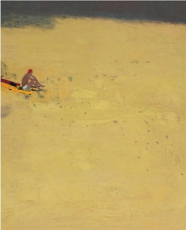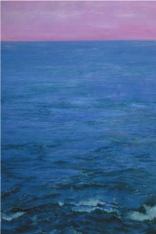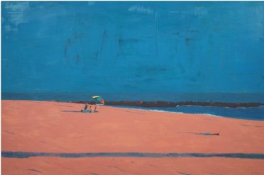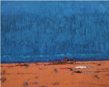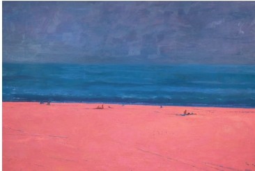 洪樑曾说:“绘画就是通过画面来实现自我内心的投射。”在一个艺术潮流变幻莫测的时代,洪樑依旧诚挚地观察自然,沉醉于捕捉每一片稍纵即逝的色彩。他不拘泥于事物的固有外形,而是用自然造物抒发自己的情感,让恬淡抒情的气质贯穿他的作品。这一特质在近年来的大海绘画中尤为突出。他笔下的海朝晖夕阴,气象万千,一如人的喜怒哀乐。沙滩上时而出现三两个人物,虽然没有具体刻画面部表情,却各有姿态和个性。他对大海同样采用一种远观的态度,也许这样才能更好地体会大海的开放和多元,大海是自我的也是包容的,是私密的也是开放的,是安静的也是激情的,是恒定的也是偶然的……大海如同洪樑自己,丰富多元、矛盾统一,并有着自己的“体温”。所以,洪樑才借用大海表达自我情感。在大海系列油画中,洪樑的早期作品《独自去找回一个少年的梦》(封二)比较能够反映他内心的追求。在碧波荡漾的大海中,一位老年人摇曳着独木舟缓缓划向没有天际的远方,似乎去寻找什么,一缕温暖的阳光洒落在老者的身上和船舱里……这一切,正像画家在题目中所提示的那样,老人要寻找曾经的少年未实现的愿望或梦想,那是远方还是爱情?无论如何,那必是一个难以释怀的温馨的梦吧?