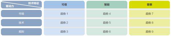 如果把技术特征与驱动力叠加,可以勾勒出金融科技的九大发展趋势。