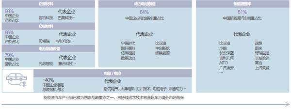 中国企业在新能源汽车的关键上游产业领域,亦建立起核心竞争优势,在电池领域尤为突出。