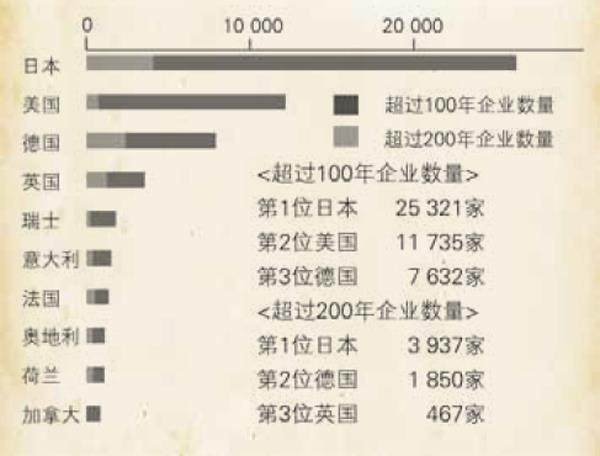 日本是名副其实的长寿企业大国,其至少在三个指标上居于领先地位。