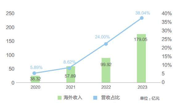 全年,其海外销售179.05亿元,占比达38%左右。相比之下,2021年才57.8亿元,不及2023年的三分之一。