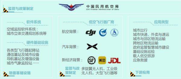 按照高度划分空域,可将其分成泛低空通航区、类常规飞行器载人通航区、行业应用通航区和消费民用区几个区域,涉及产业链中所有低空飞行器的工作内容。