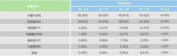 根据华福证券交易软件使用情况统计,61—70岁群体的华福掌乐手机、同花顺PC、通达信PC的使用人数比例,相较于其他年龄段都较高,比例分别为5.67%、15.37%、2.23%。