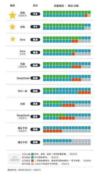 按照正确、错误、没回答的情况分别赋分,整体来看,豆包得分最高,通义千问吊车尾。而在错误率上文心一言最高,87%的回答出现错误。