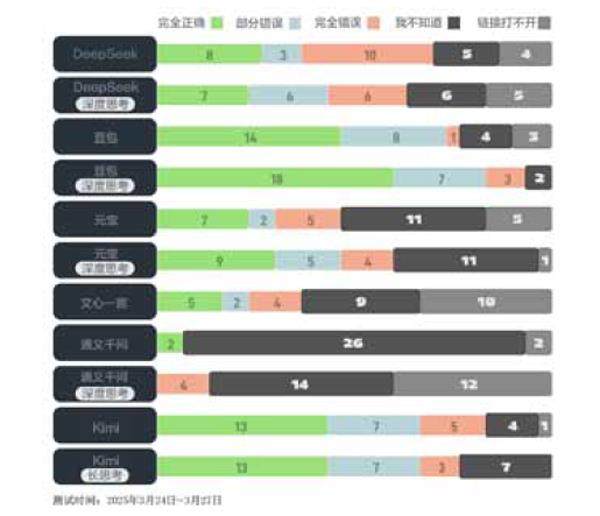 我们总共提问了330次(3篇报道×10家媒体×11个版本AI),在AI的330次回答中,只有大约25%的回答完全正确,即准确回答了标题、作者和链接三个指标。