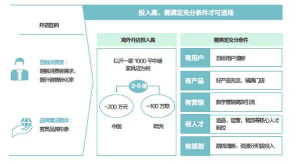 线下店在发达国家的单店投入,为中国国内的3~5倍,且开店手续繁琐苛刻,需谨慎规划,确保各项条件充分满足后再推进。